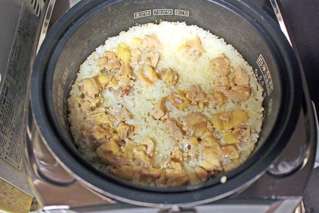 炊飯器の中に鶏肉ぶち込んで、創味シャンタンを小さじ一杯