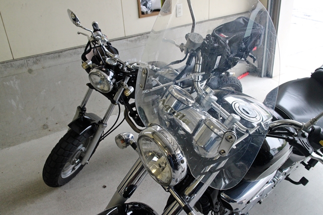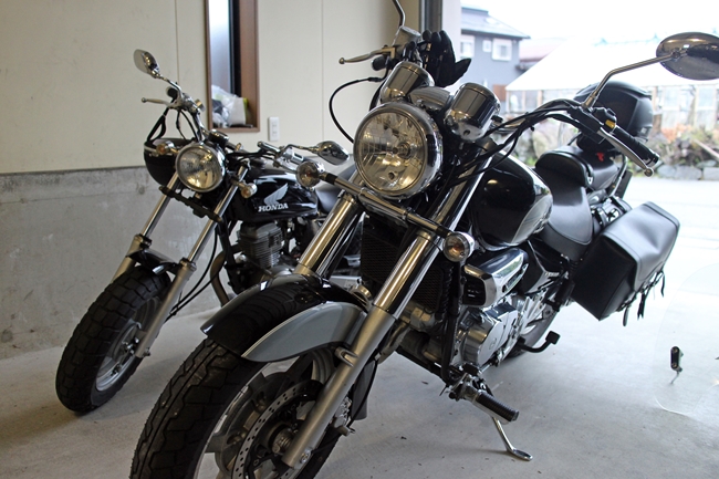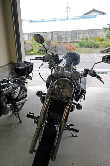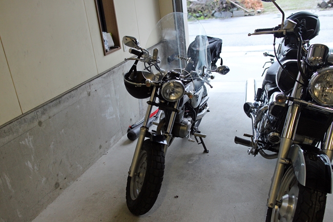 車をガレージの外に出してバイクを停めちゃうくらいw