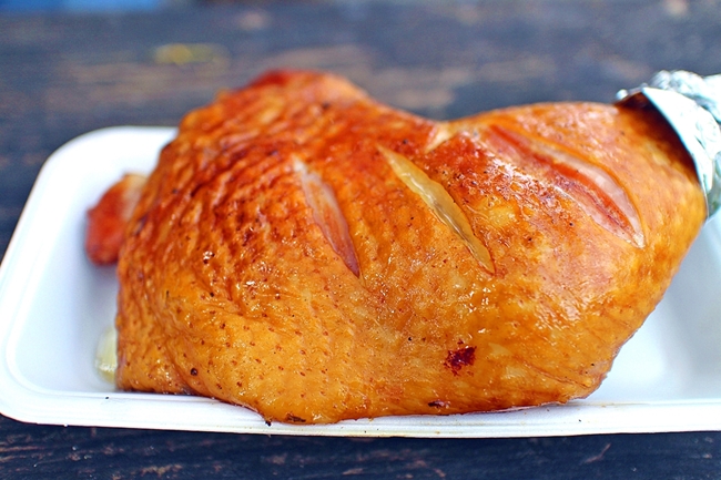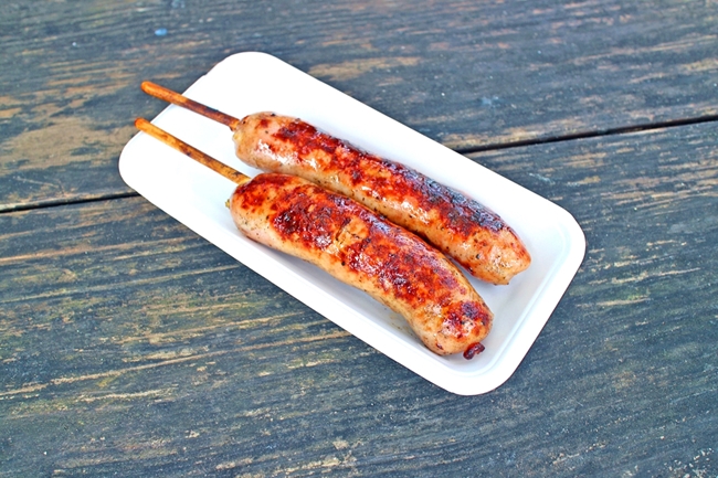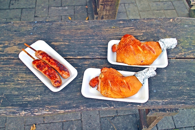 並んでKさんに買ってもらった、フランクフルトとチキン