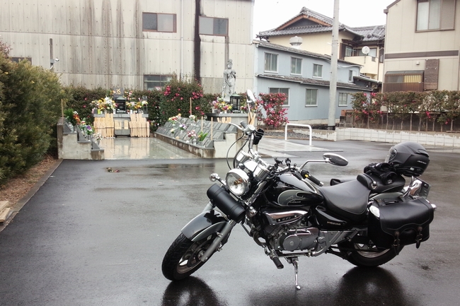 午前中は雨だったけど、昼から止んだのでバイクで墓参り