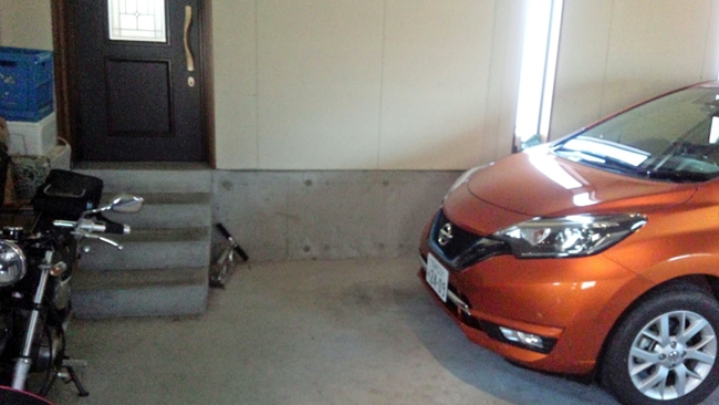 セレナでは余裕のあまりないガレージが、ノートだと余裕いっぱい