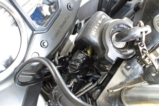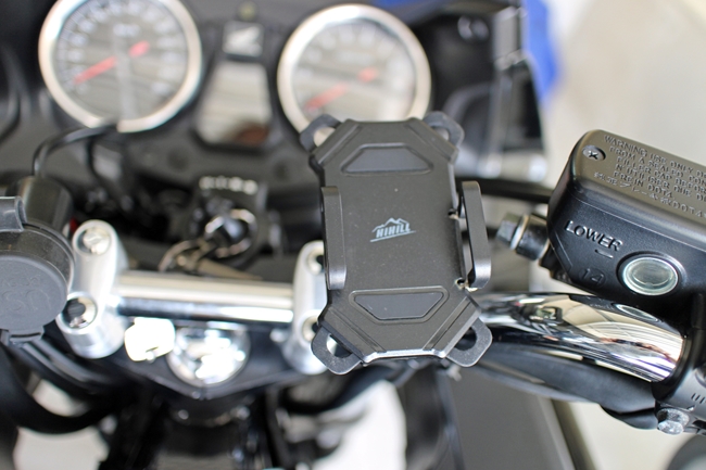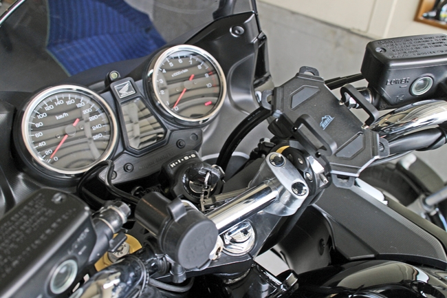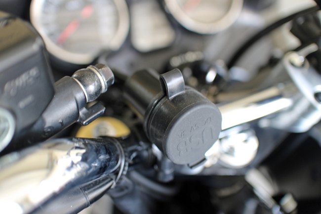 前のバイクGV250から、スマホホルダとUSB電源を移設