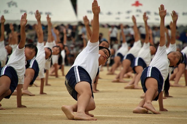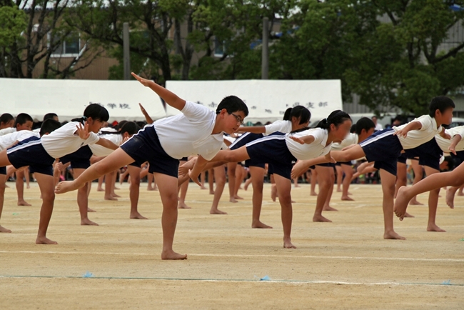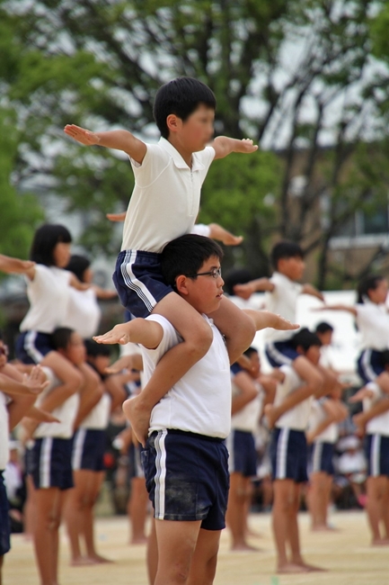 6年生と合同演目の組体操