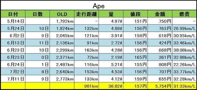 こうやって燃費管理するまで、こんなに悪いと思っていませんでした