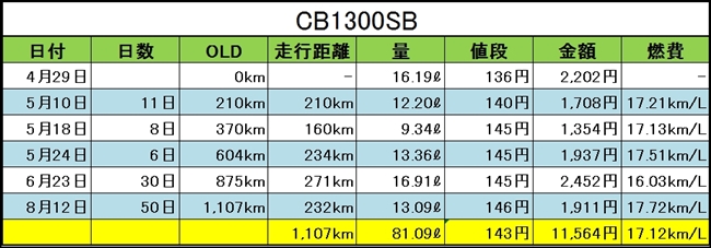 ガソリンを口切いっぱい入れたり入れなかったりなので、2㎞/Lくらいは変動する