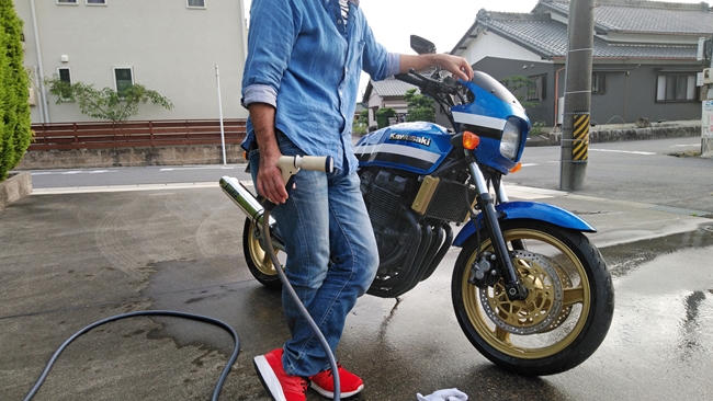 先日、CB1300SBを家の駐車場で初めて洗車しました