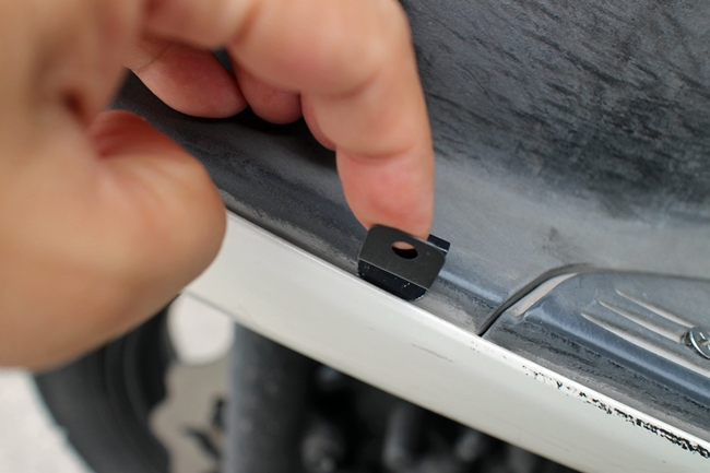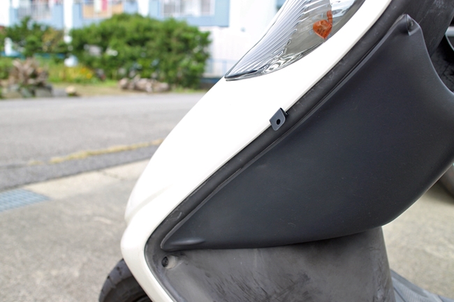 貼って、金具を調整し、プラスチックのリベットで金具と本体をくっつける