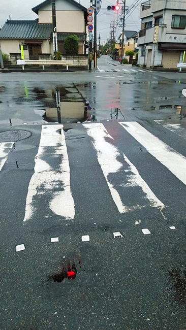 先ほどまでたっぷり雨が降っていたので、道はびしょ濡れ