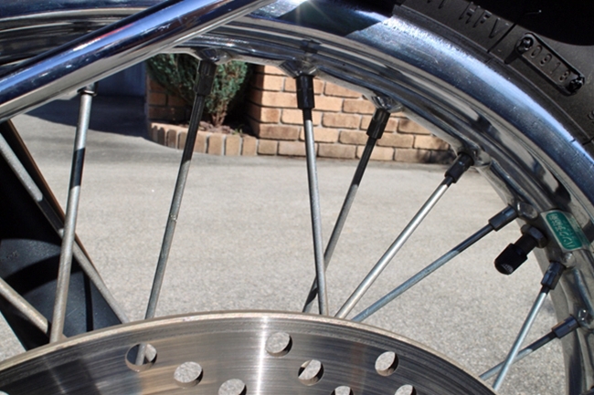 そして、写真の様にフロントの左のホイールは磨きやすいけど、右側だとブレーキディスクが邪魔