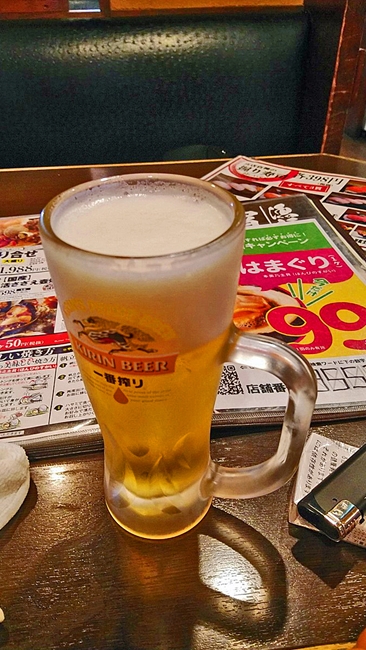 生ビール2杯、ハイボール2杯、日本酒1杯