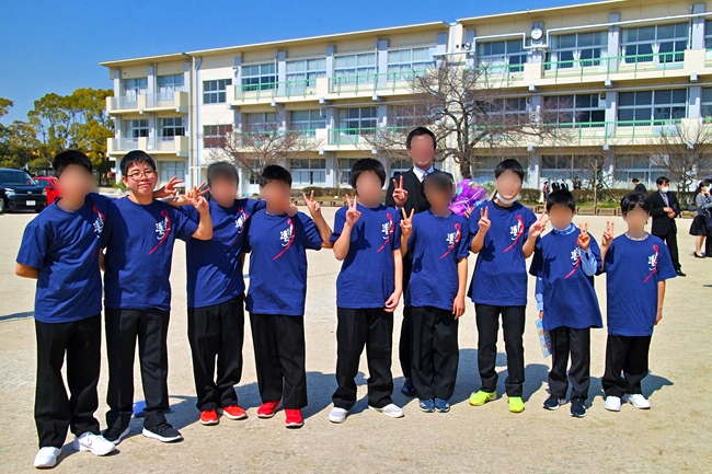 バスケット部で記念にTシャツを作り、顧問の先生とお別れ