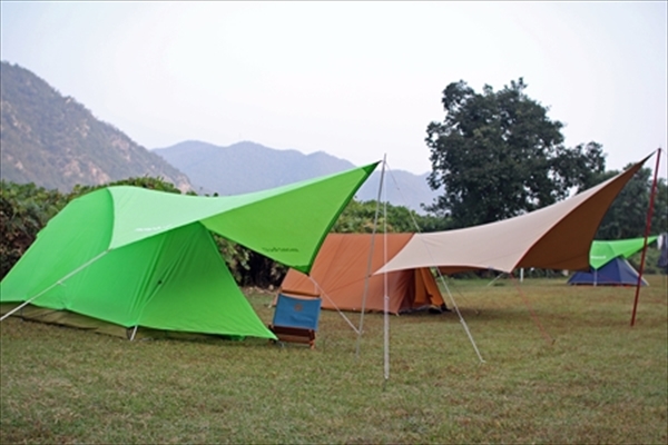タープ張ったけど、タイちゃんとこのレクタにパラサイト