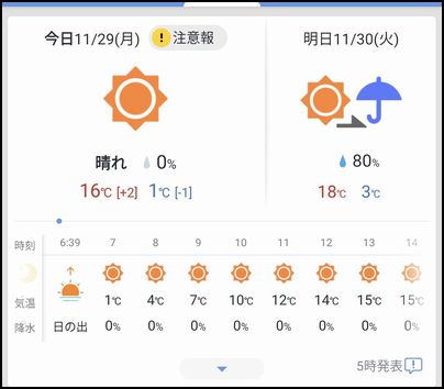 最高気温こそ15℃ありますが、最低気温は1℃