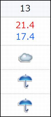 最後に予報を見たときは、12日の夜中に大雨で、13日は普通の雨