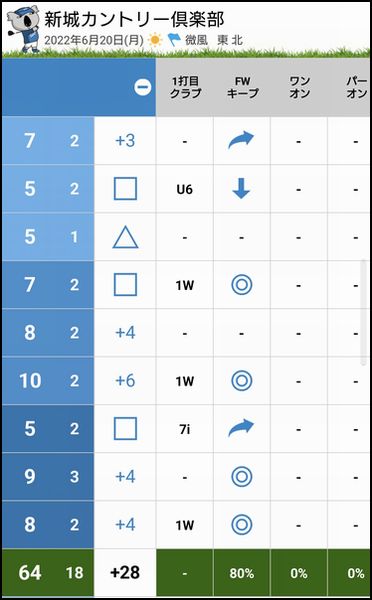 ミドルのトリプルボギー以上叩いてしまうのを何とかしなければ、スコアアップ出来そうもないですね