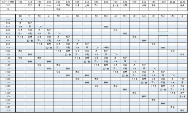主要選手が、だいたいの時間に何番ホールに居るか目安表を作りました