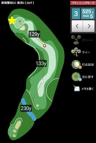 ピンは右寄りに切られていたため、プロの攻め方はだいたい図の感じ