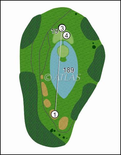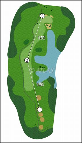 でも果敢に真ん中を狙い、左に引っかけ池の中w