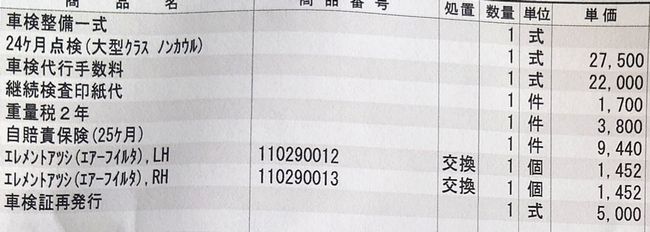 ユーザー車検ならもう少し抑えられそうな気もするが、初回なのでプロにお任せ