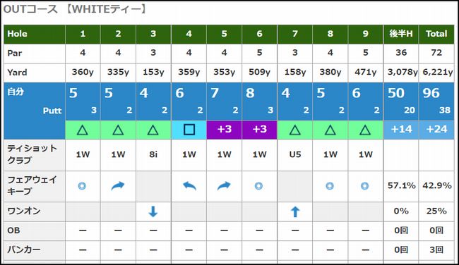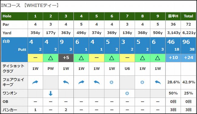 3ホール目で、バンカーにやられてプラス5出しちゃってますけど・・・