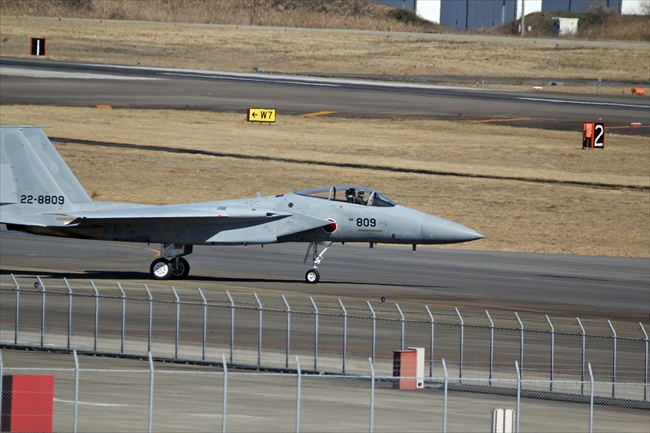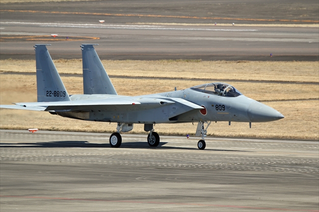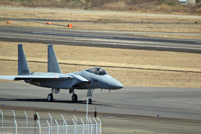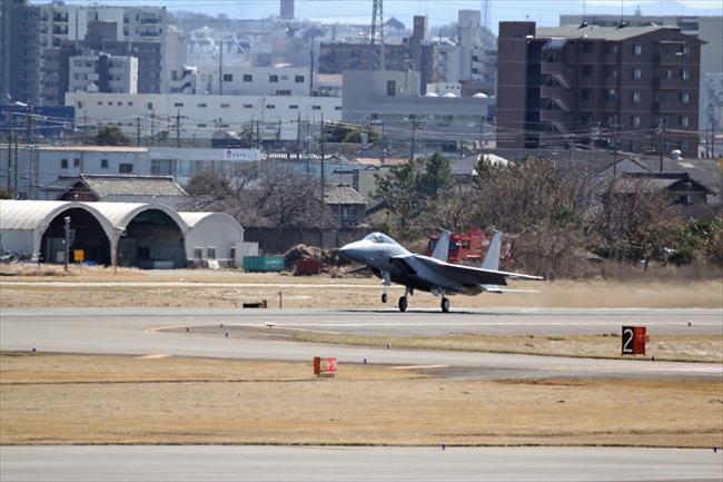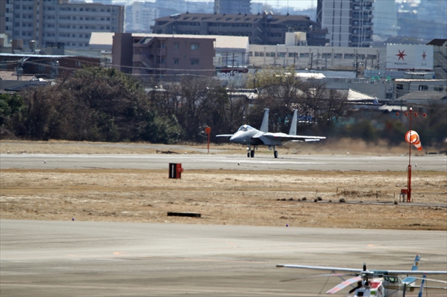 基地側ではなく空港側のハンガーから、F-15が出てきた