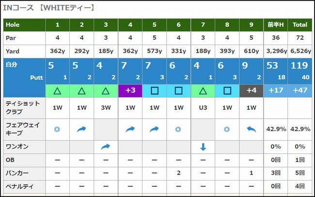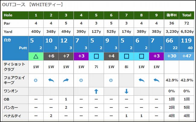 後で数字だけのスコアを見返すとガッカリしちゃうけど、ラウンド中は楽しいのよ
