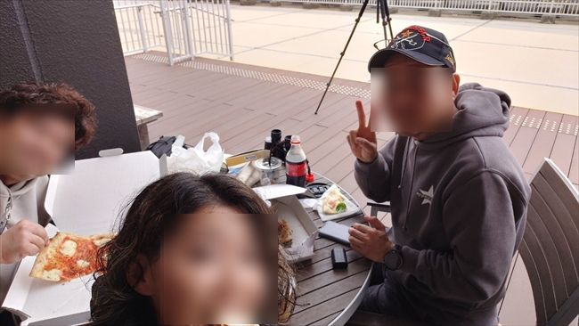 機材がいっぱいだったのと、ドラミが離れたくなさそうだったので場所を変えずに食べました