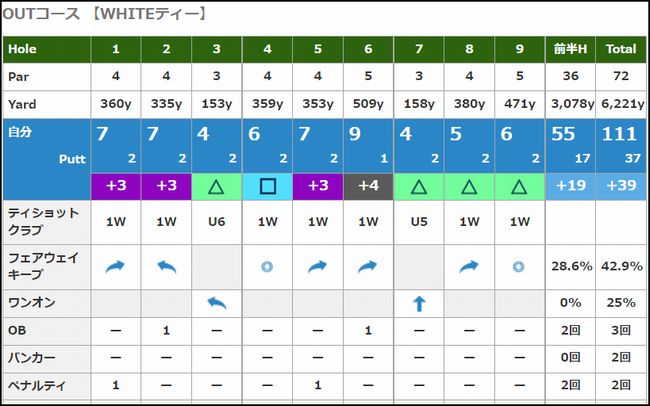 ドライバーは200Y飛ばすのがやっとのくせにFWキープ率悪すぎ