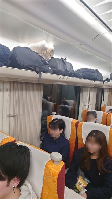 指定席、隣は上司だったので酒を持って移動