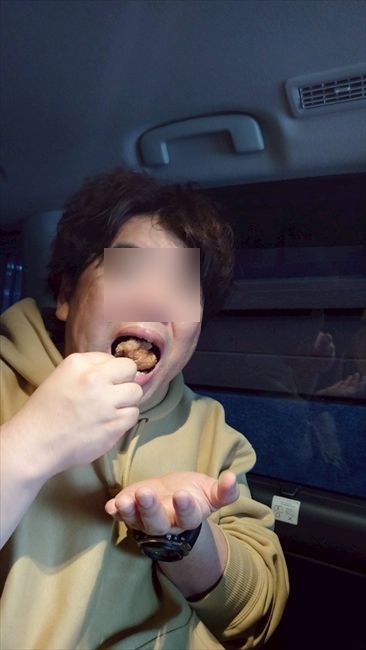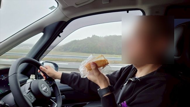 PAで朝食のパンを買ってもらって、運転しながら食べた