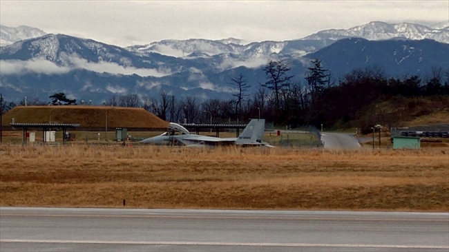 基地側に1機、アンチコ点いたF-15が見えたとドラミが言う