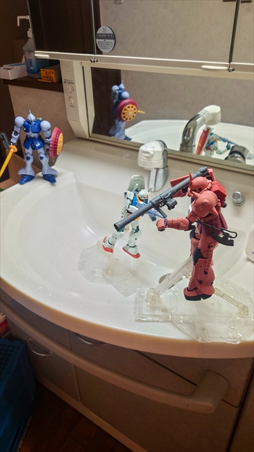 寝室で埃まみれになっていたガンプラも洗って展示します