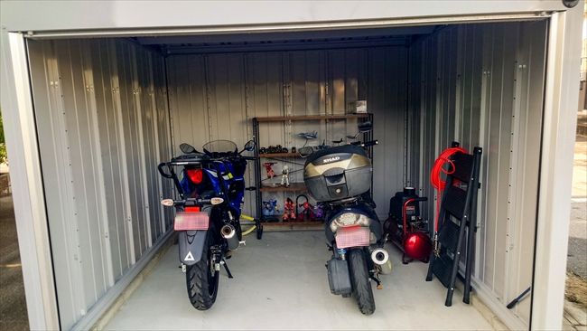 車用のガレージもあるんだけど、そこは遊び道具がいっぱいで置く場所なし