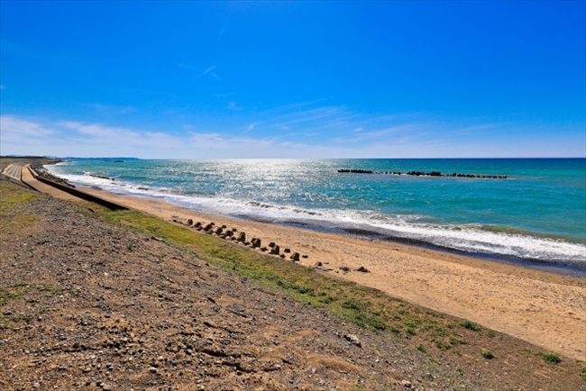 店舗前の防風林の松林を超えたら安宅海岸なんですって