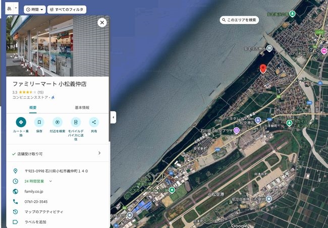 空港近くのコンビニは『ファミリーマート 小松義仲店』