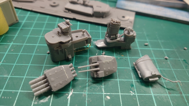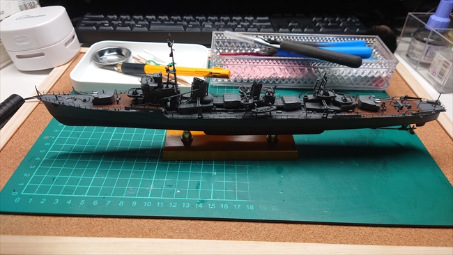 その後は魚雷発射管や主砲、艦橋(ブリッジ)や煙突など艤装を組み立て
