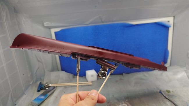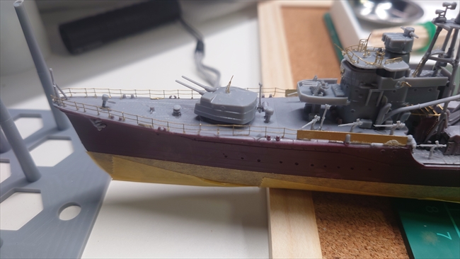 甲板に艤装を取り付ける前に艦底色の塗装を実施