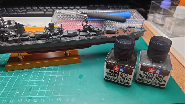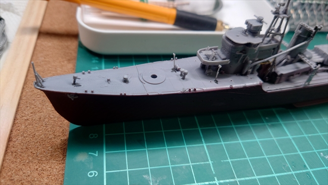 リノリウム部分と、煙突、主砲カバーは筆で塗る