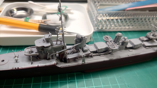 基本的に甲板上の艤装だとかの構造物などは同じ色で塗られているので塗装は楽ですね