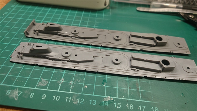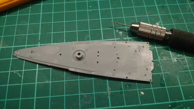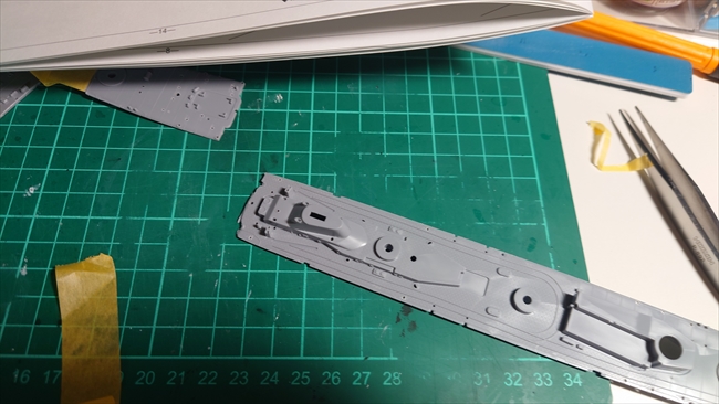 甲板には穴あけ指示もあり、パーツの一部は不良でハセガワに連絡して交換対応してもらった