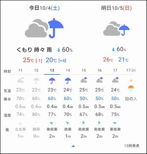 写真は4日当日にスクショした天気予報だけど、2日くらい前から同じように雨予報が出ていた