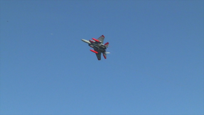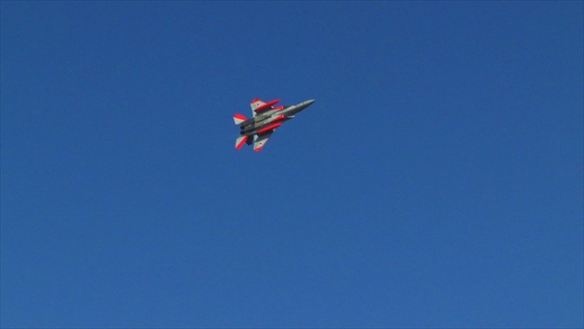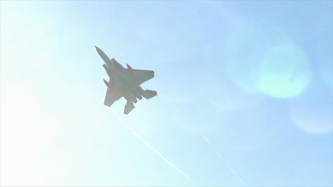 せっかくの青空と異機種編隊、F-15の機動飛行