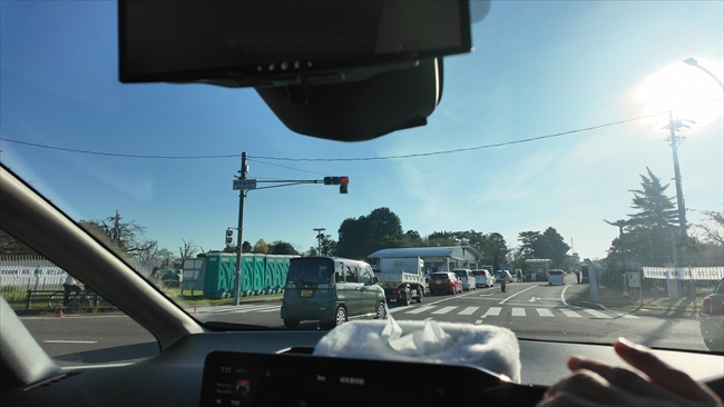 博物館の駐車場入り口は、既にかなりの台数がいて道にはみ出していた