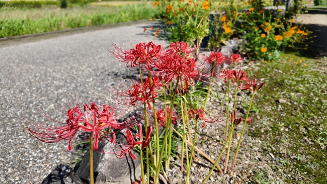 基地活の帰り道、道端の秋を象徴する彼岸花