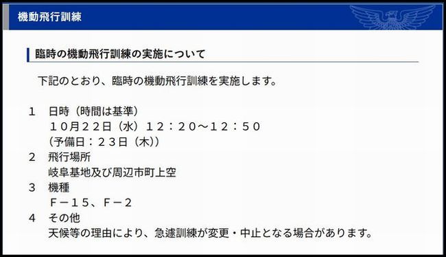 そんな所へ、岐阜基地で機動飛行訓練を行うと言う情報を得た