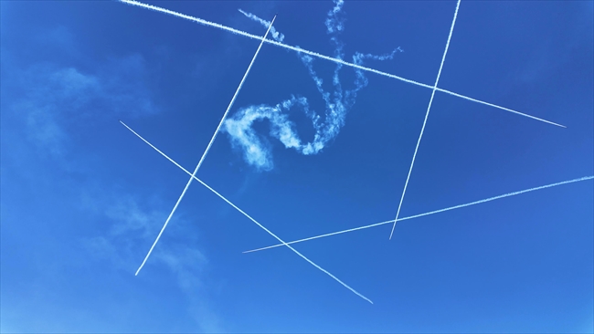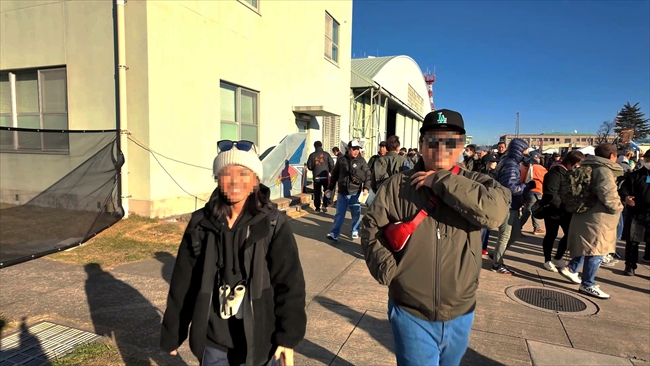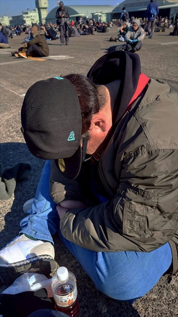 一緒に並んでいた皆さんが振り返って空を見上げている