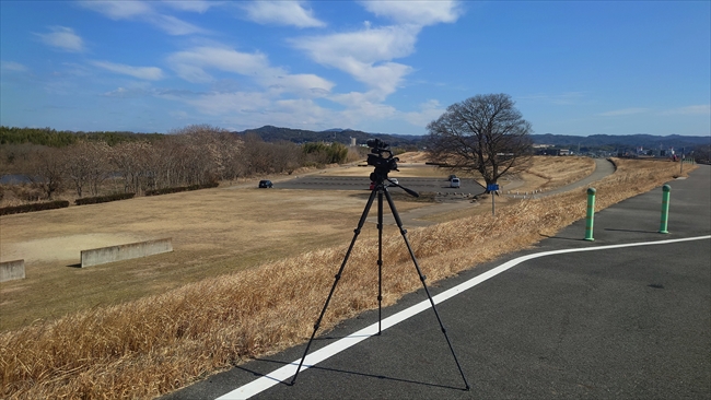 矢作川河川敷に機材をセット