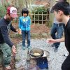 チガちゃんは、ガッツリ焚火で焼き鳥焼いてた